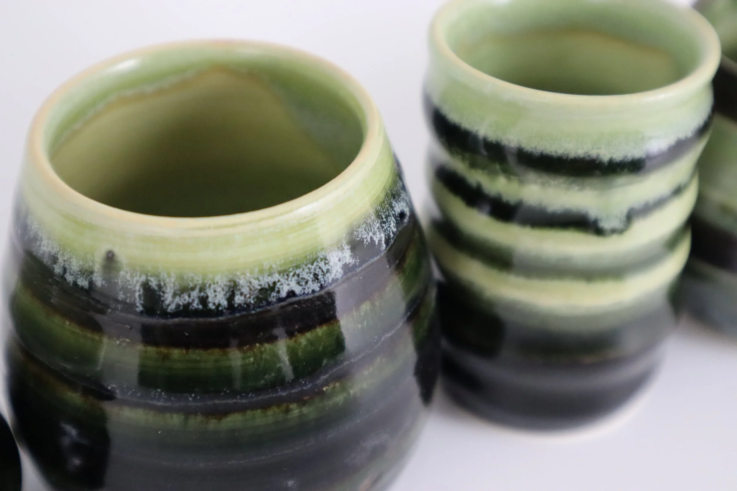 These two sets of chai tea cups were inspired by custom orders from two individuals who had both spent time doing mission work in the same part of the world. In the community they served, sharing tea was a daily rhythm—a way to slow down, connect, and build relationships. When they returned home, they each wanted to bring a piece of that experience with them, and I was honored to help make that happen.
